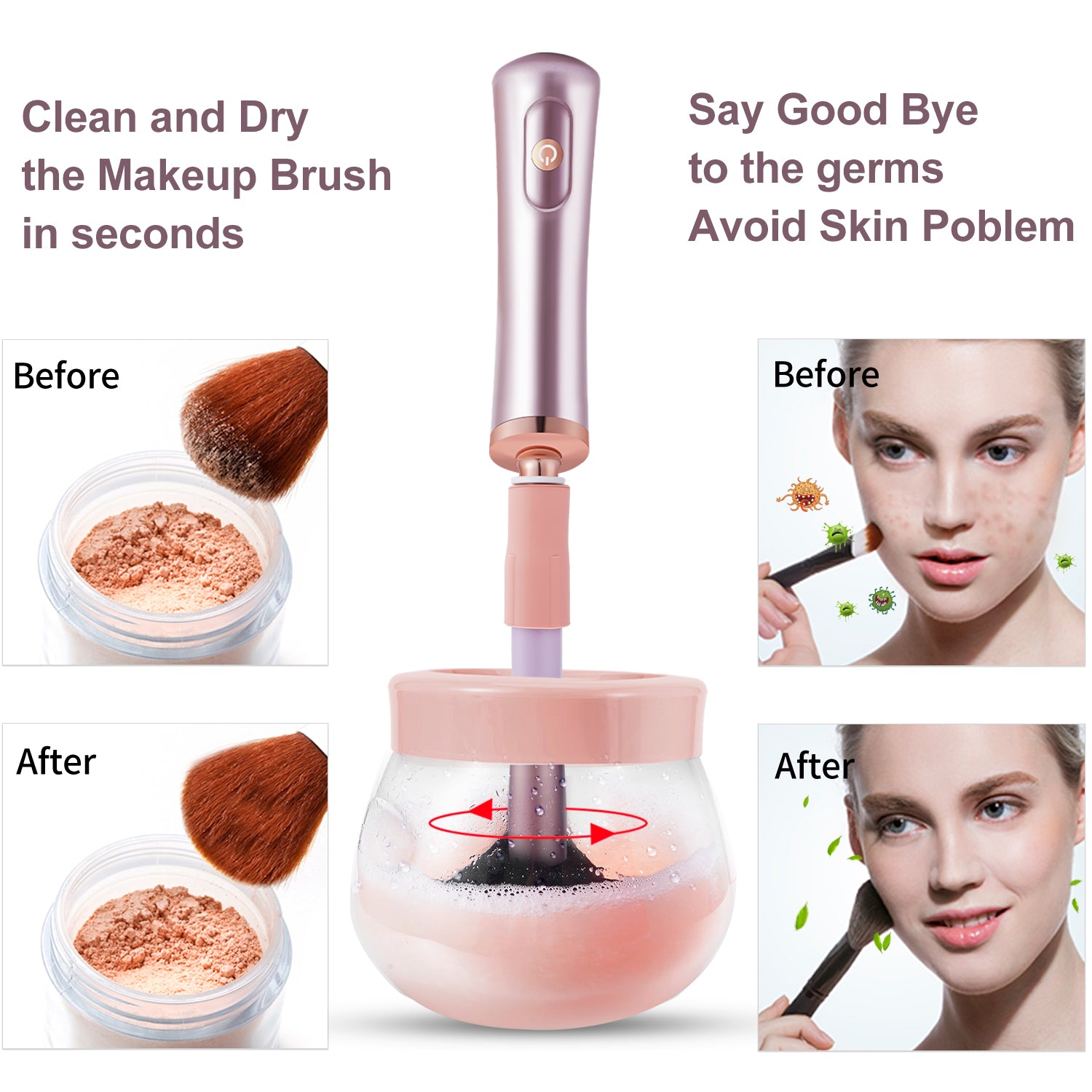 Quickly and easily to clean and dry: takes about 10 seconds to clean and 10 seconds to dry, one ergonomic designed switch to handle will save your time and make your makeup job more convenient and more pleasing